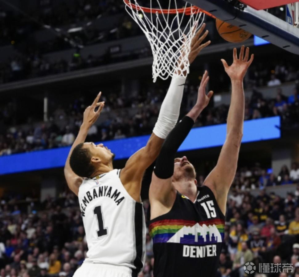 本赛季常规赛,文班亚马64场比赛中场均得到25分11.5个篮板和3.1次助攻;约基奇65场比赛中场均得到27.7分、12.9个篮板和10.7次助攻。