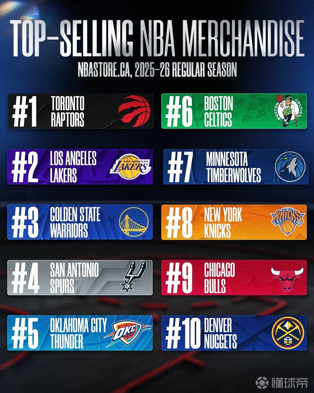 NBA加拿大官方社交媒体账号公布了本赛季NBA球衣在加拿大地区的销量排行榜,多伦多猛龙的球员斯科蒂-巴恩斯销量位列第一,勇士队的斯蒂芬-库里位列第二。