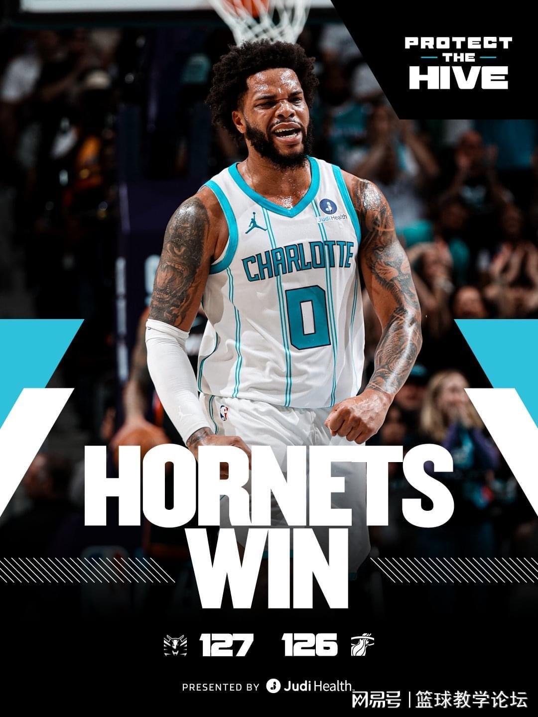 三球强突篮下,再次上篮打进,黄蜂重新领先1分。最后4.7秒,热火没有暂停了,只能后场发球。小米切尔一条龙上篮,布里奇斯完成盖帽绝杀!全场结束,黄蜂127-126绝杀热火。黄蜂还得再打一场附加赛,热火直接被淘汰。