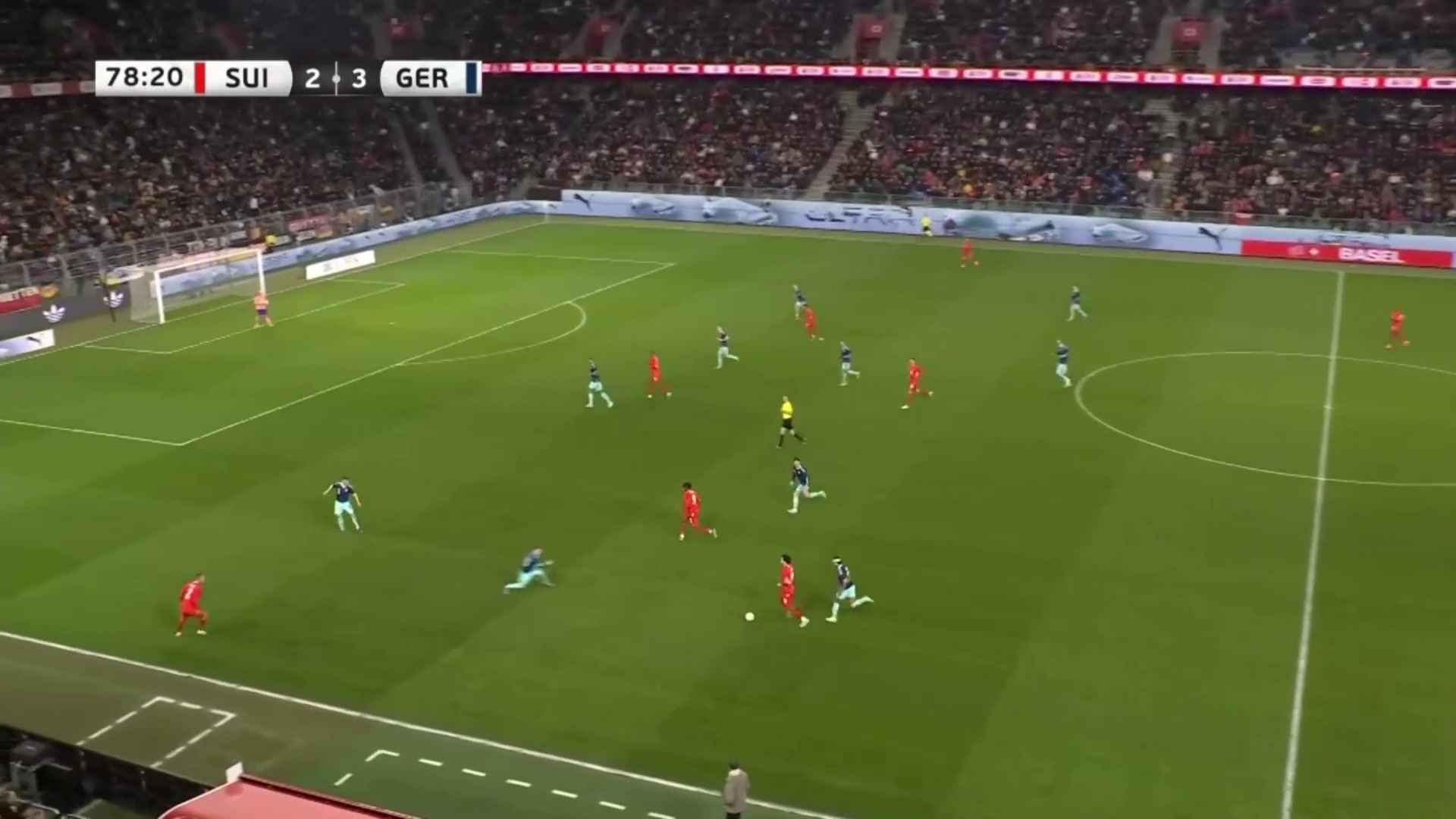 瑞士3-3扳平德国蒙特罗弧顶处接球抽射世界波破门
