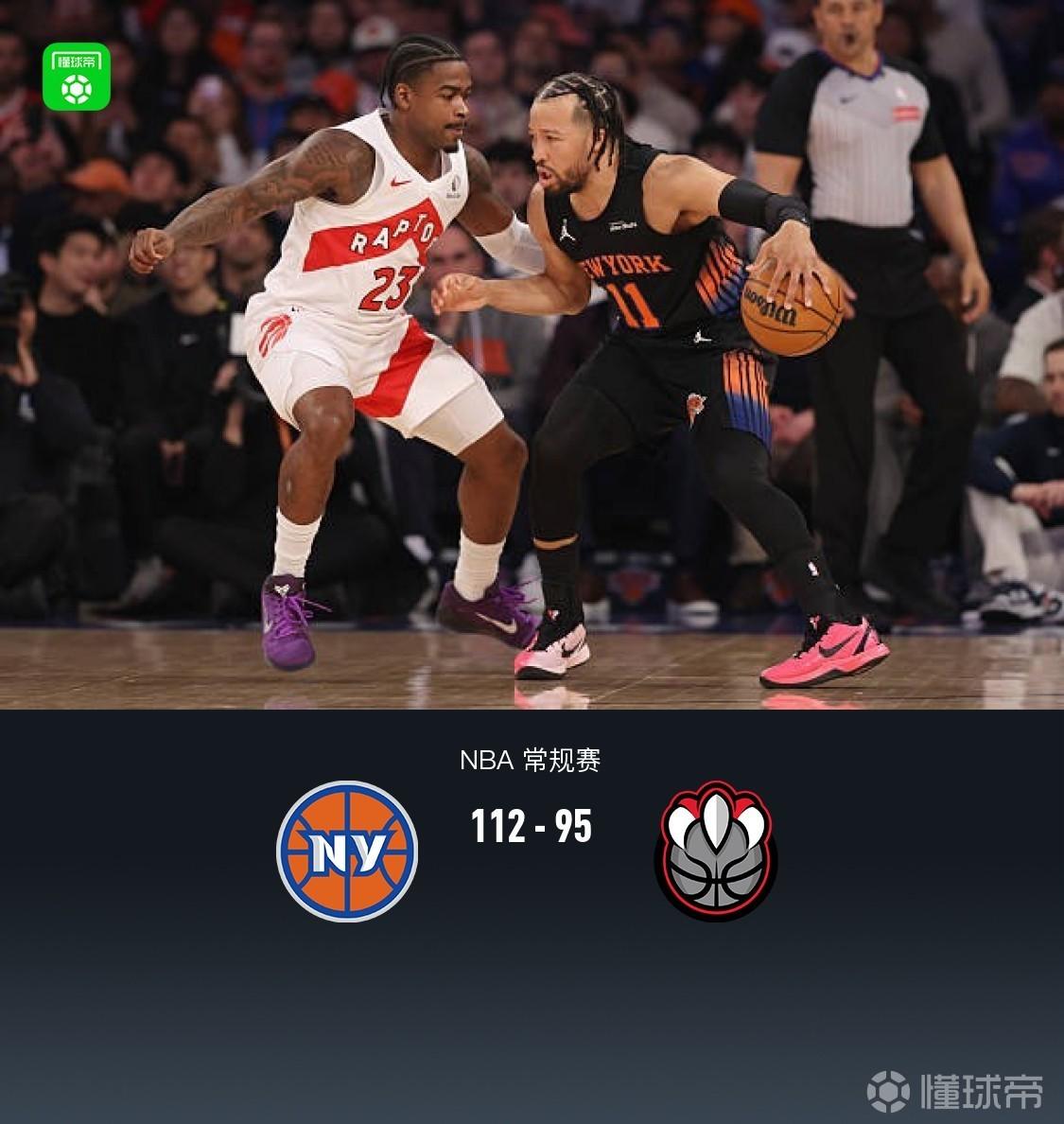 尼克斯112-95轻取猛龙,布伦森29分,唐斯22+10+5
