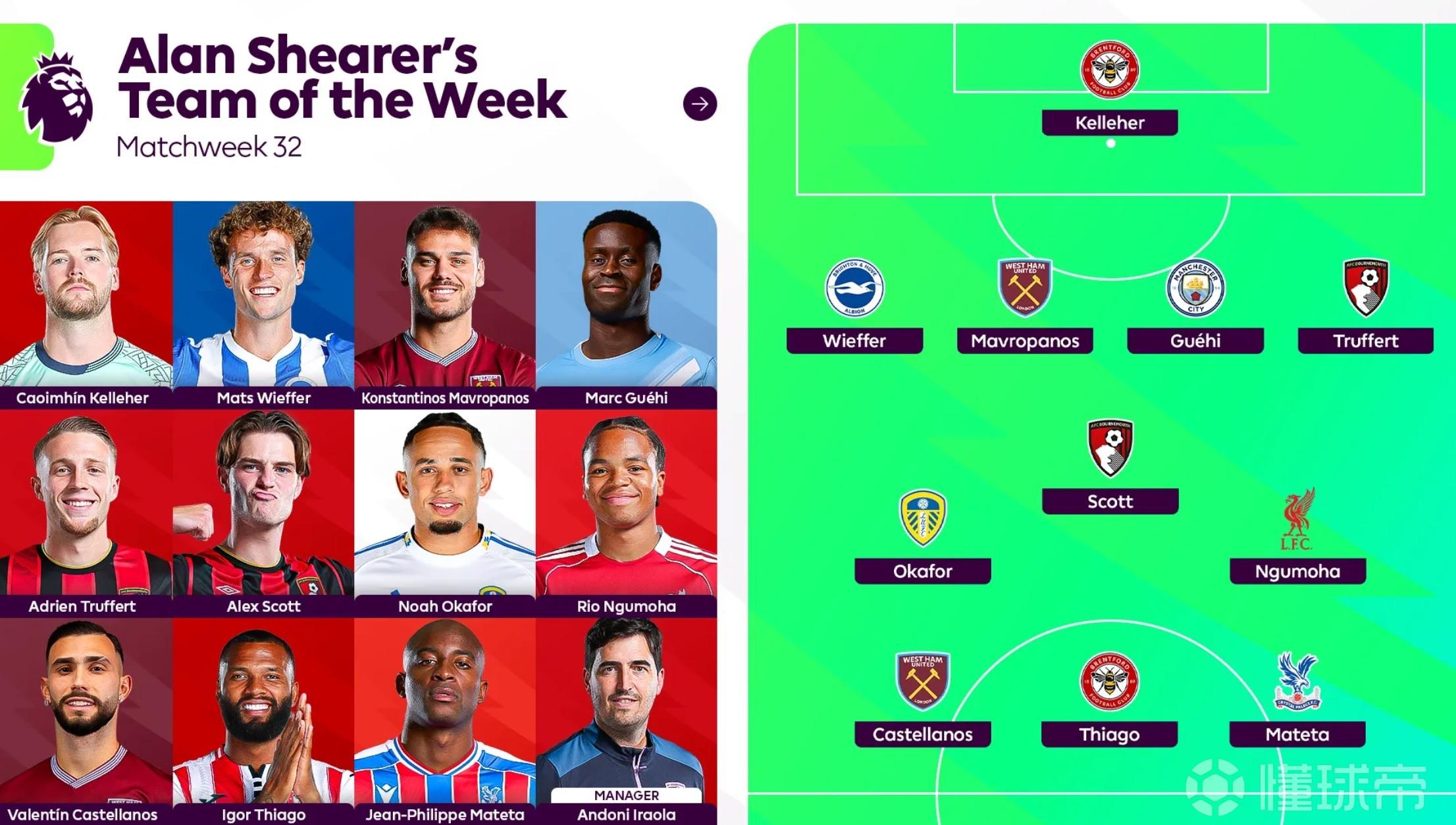 希勒评英超本轮最佳阵容:格伊、恩古莫哈、奥卡福尔等人在列