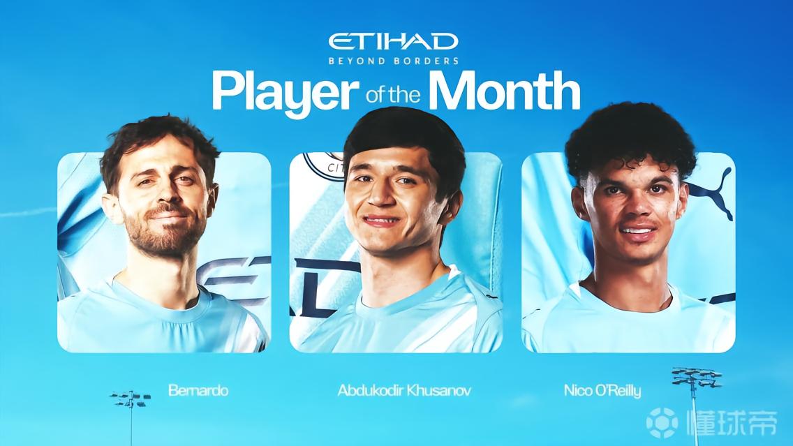 曼城官方公布了队内4月最佳球员候选名单,分别是伯纳多-席尔瓦、胡桑诺夫和尼科-奥赖利。