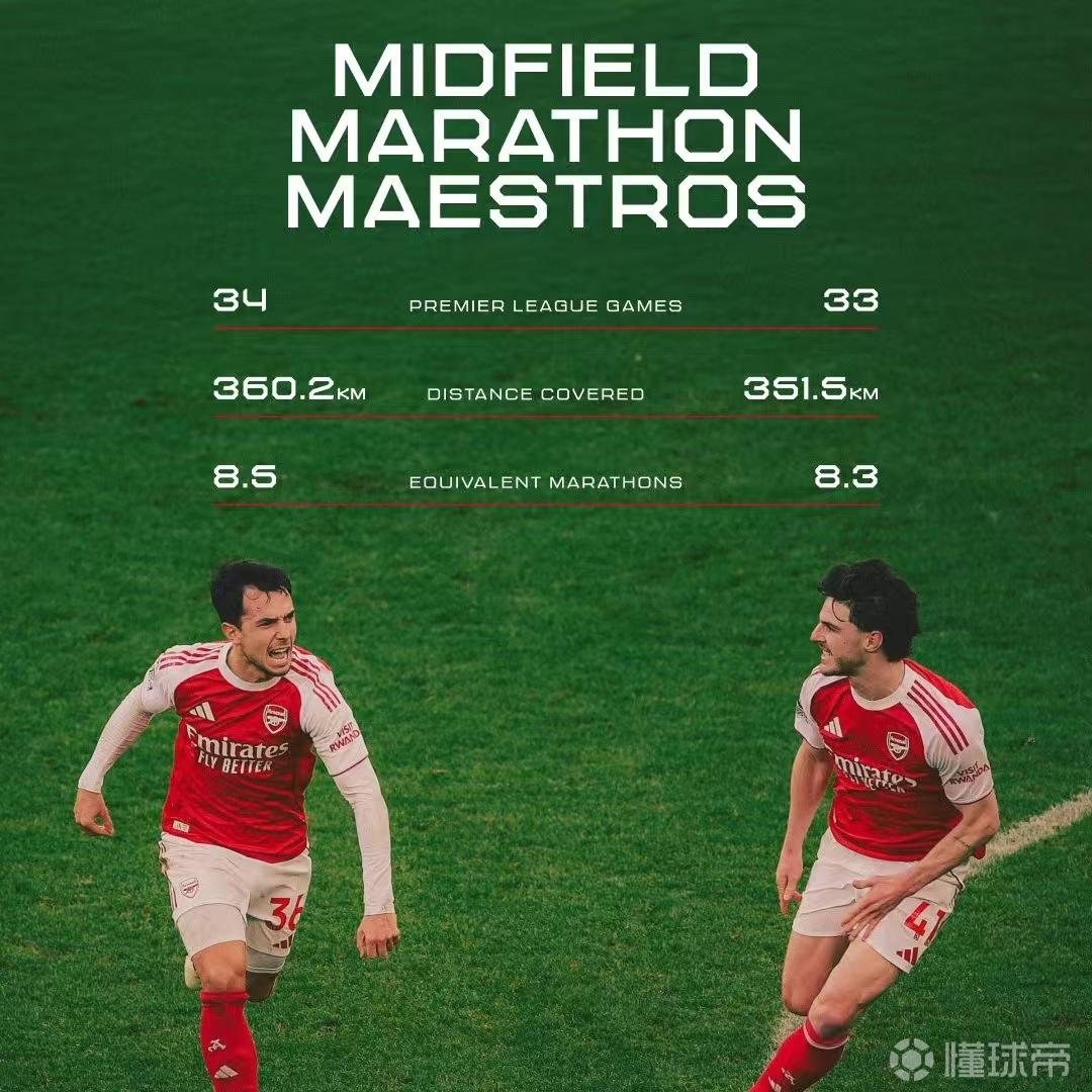 纯牛马!赖斯、苏维门迪本赛季英超相当于跑8趟...